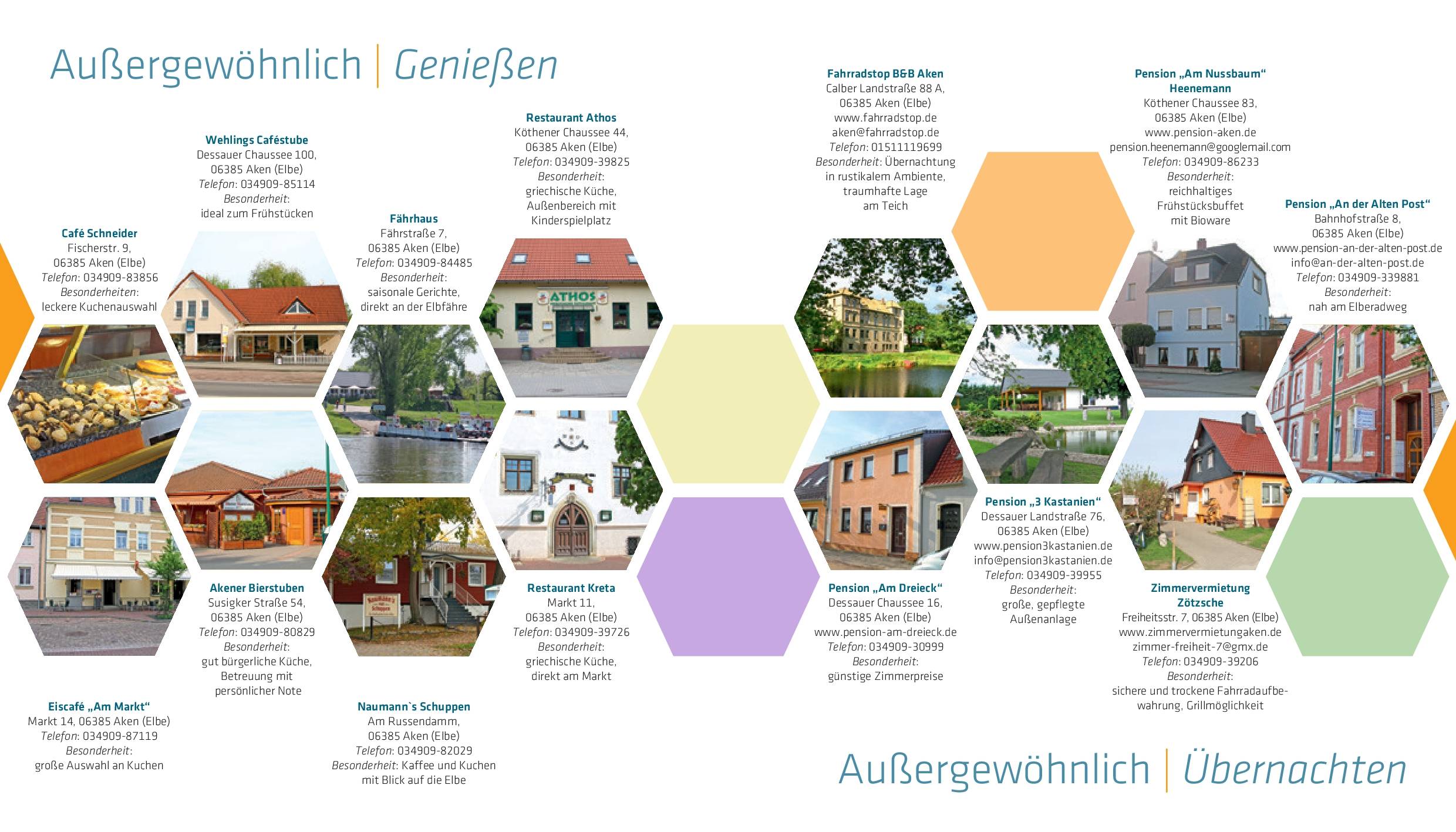 Karte der Stadt Aken (Elbe) / Unterbringung / Verpflegung /Sehnswürdigkeiten