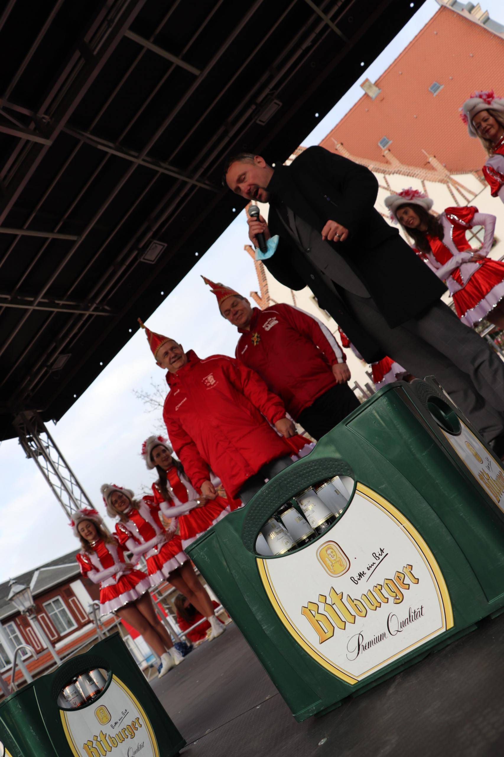 Erst nach der Zahlung einer Lösegeldforderung in unbekannter Höhe der flüssigen Währung „Bitburger“ konnte Akens Bürgermeister, Jan-Hendrik Bahn, nach einem Cyber-Angriff den Schlüssel zur Stadtkasse zurückkaufen, um die Stadtkasse samt Rathausschlüssel dann den Karnevalisten des Narraria Club Aken 1875 e.V. auf dem Marktplatz der Wasser- und Schifffahrtstadt zu übergeben.