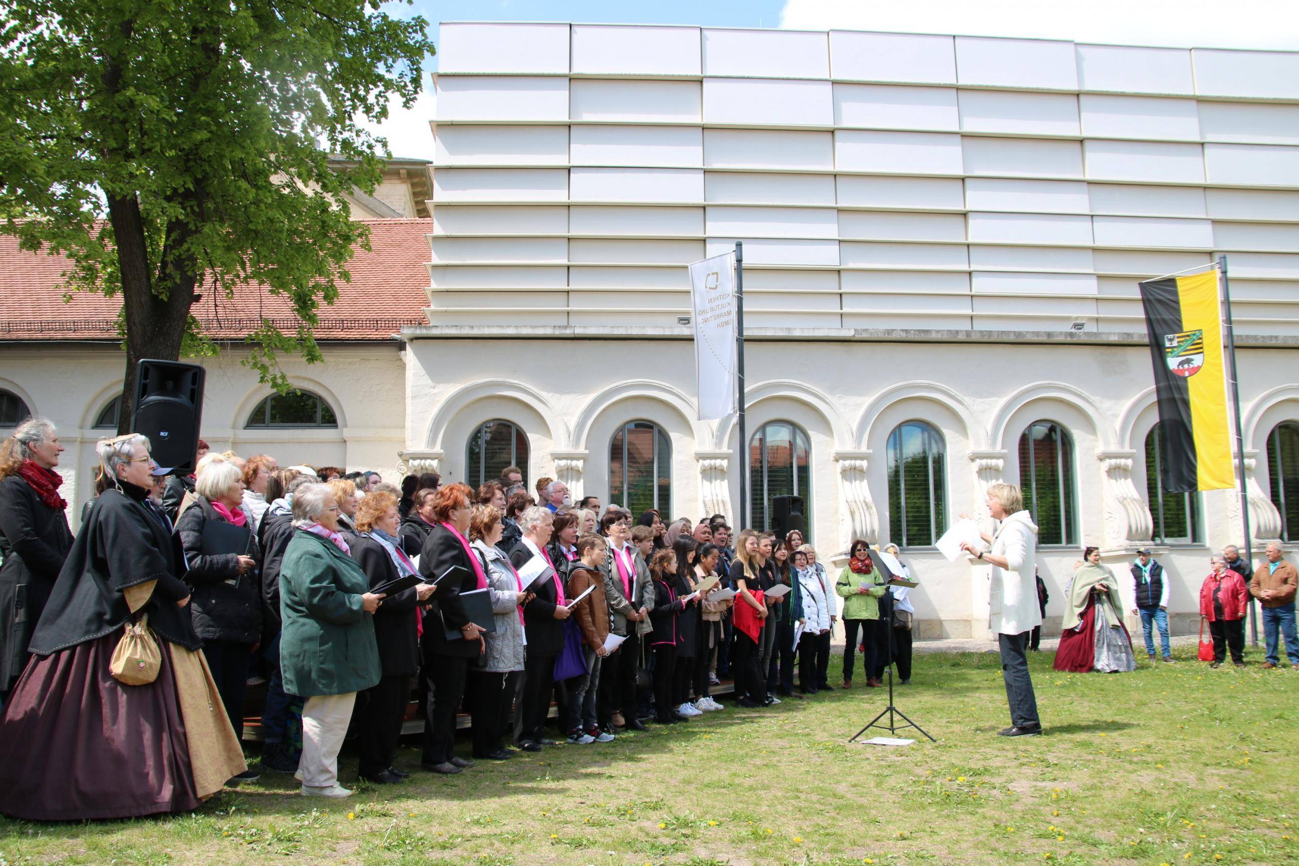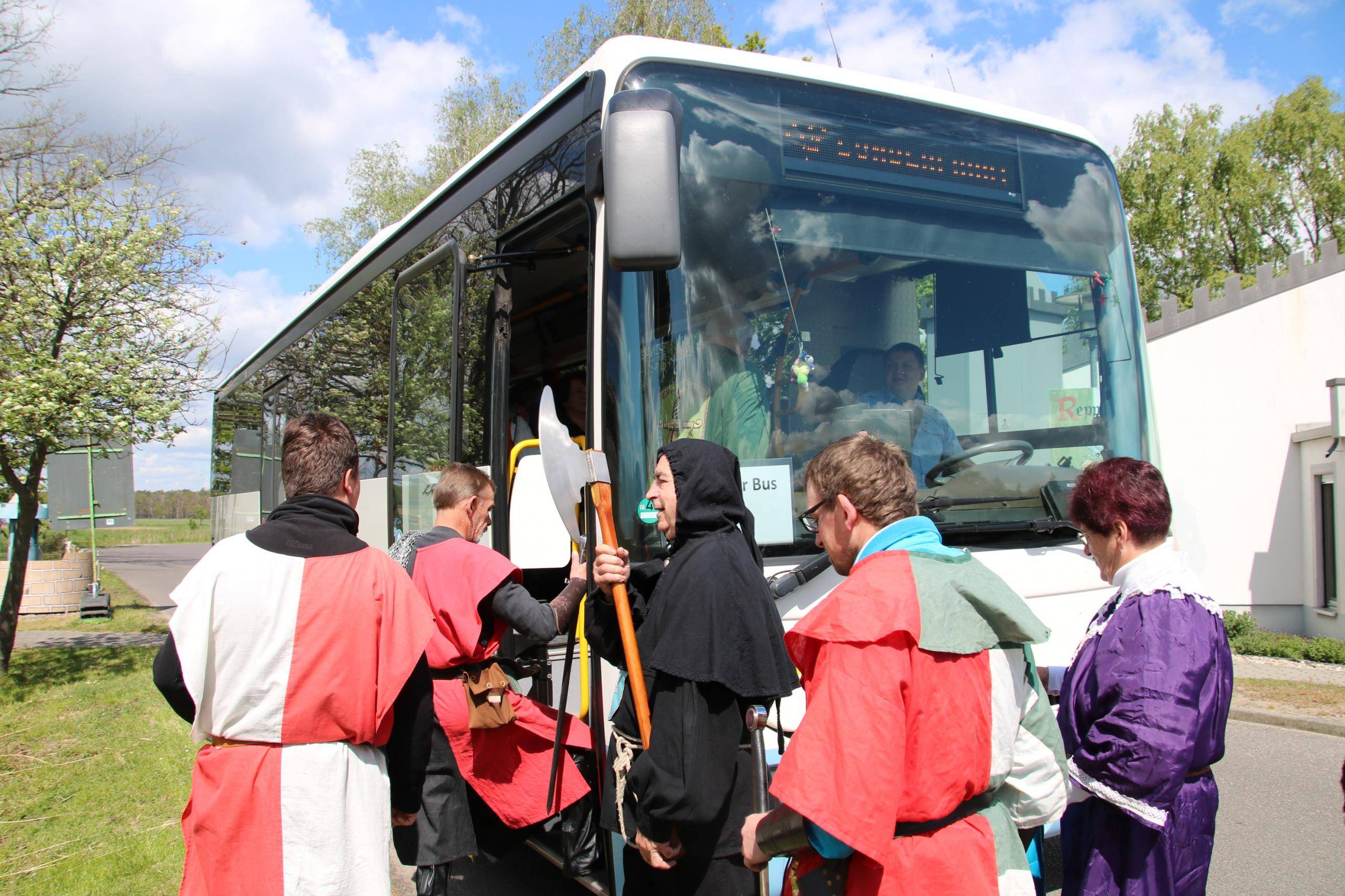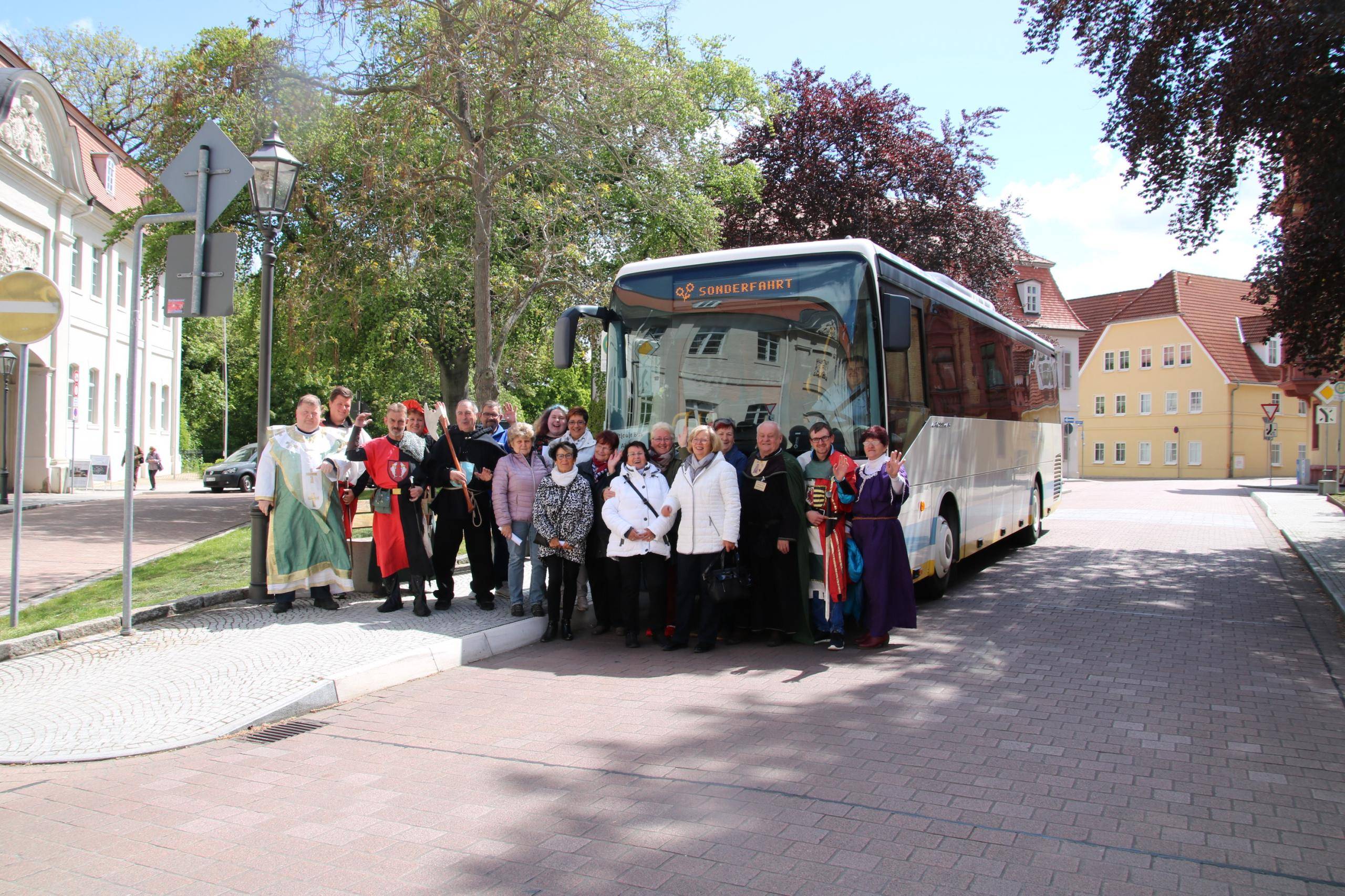 Die Mobilität im ländlichen Raum stärken und gleichzeitig ein kulturelles Angebot über die Stadtgrenzen hinweg anzubieten, dies sind die ehrgeizigen Ziele, die die Stadt Aken (Elbe) derzeit vorantreibt. Hierfür bedarf es starker Partner, die die Verwaltung in den Initiatoren der Köthener Kulturinitiative 17_23 gefunden hat. Als Korrespondenzort des Förderprogramm TRAFO – Modelle für Kultur im Wandel der Kulturstiftung des Bundes möchte die Wasser- und Schifffahrtsstadt unter dem Titel „Neue Kulturen des Miteinanders. Ein Schloss als Schlüssel zur Region. (FREI)RÄUME FÜR SCHRÄGE VÖGEL. MIT LEIDENSCHAFT“ sichtbare Impulse für ein vielfältiges kulturelles Miteinander in der Region setzen. In der Pressekonferenz der Bachgesellschaft entstand aus dem Dialog zwischen dem Geschäftsführer, Folkert Uhde, und dem Bürgermeister der Stadt Aken (Elbe), Jan-Hendrik Bahn, die Idee einen Kult(ou)rbus zu initiieren. „Die Verknüpfung der Kulturorte im ländlichen Raum wirft die Fragen der Mobilität auf. Hier benötigen wir eine Antwort für unsere Bürgerinnen und Bürger auf dem Lande. Ein Kult(ou)r Bus, der die Veranstaltungen des Projektes anfährt, würde einen wunderbaren Impuls in die Region senden und das Kulturangebot für jedermann erlebbar machen.“, argumentierte Bahn. Die Elbestädter haben für die Umsetzung ihrer Idee bereits einen Startimpuls gegeben. Der Kult(ou)r Bus der Stadt Aken (Elbe) hatte am 05. Mai 2019 seine Premierenfahrt nach Köthen unternommen. Mit an Bord, zahlreiche Vertreterinnen des Akener Frauenchores, die auf Ihrer Reise im Nachbarort Reppichau Halt machten und dort gut ein Dutzend Mitglieder des Fördervereins Eike von Repgow abholen. Das gemeinsame Ziel war das Kunstprojekt „Blickwechsel“ welches im Köthener Schloss eine Vielzahl von Besuchern anlockte. Während die Sängerinnen des Frauenchores er klanggewaltigen Eröffnung des Thementages beiwohnten und mit Ihren Stimmen diesen sogar bereicherten, waren es die Ritter aus Reppichau, die auf den Spuren des Sachsenspiegels für Aufsehen sorgten. Nach guten vier Stunden, unzähligen Gesprächen und neuen Impressionen und Gedanken im Gepäck ging es für die Reisegruppe zurück nach Reppichau und Aken. Für die Damen des Frauenchores stand bereits auf der Rückfahrt fest, dass die Bemühungen einen Kult(ou)r Bus dauerhaft fahren zu lassen ein deutlichen Mehrwert in Bezug auf die Lebensqualität im ländlichen Raum darstellen würde. „Ohne die Initiative der Stadtverwaltung wäre diese tolle Veranstaltung ganz an uns vorbei gegangen. Wir sind sehr froh dabei gewesen zu sein“, fuhr die Leiterin des Frauenchores, Ines Klabunde, fort. Nun bleibt abzuwarten, ob die Köthener Kulturinitiative 17_23 den Zuschlag für die Fördermittel des Bundes erhält und der Kult(ou)r Bus bald die kleineren und größeren kulturellen Spielstätten der Region miteinander verbindet.