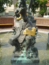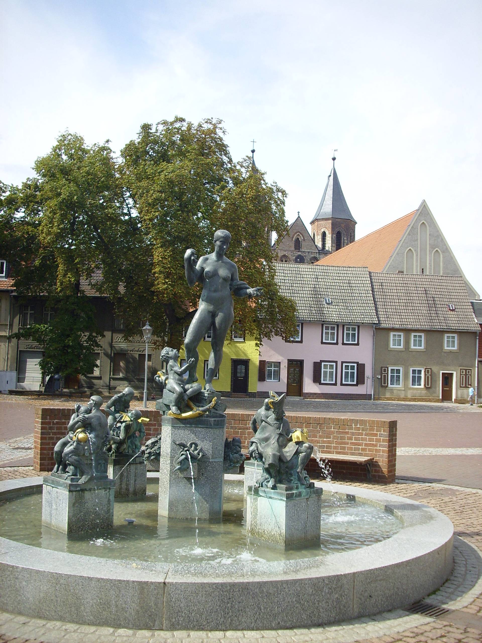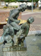 Die Mittelfigur, ein weiblicher Akt, ist als Symbol für die Elbe gedacht. Der zu ihren Füßen stehende Anker spannt den Bogen zu dem wohl noch am besten bekanntesten Teil der Akener Geschichte-Aken als größte Schifferstadt an der Elbe.