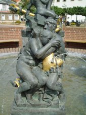 Einschnitte; diese Figurengruppe ist wohl im Vorfeld schon am meisten diskutiert worden. Die junge Frau hat aber nicht die Säge, sondern auch ein Stundenglas als Symbol für die Zeit in ihren Händen. Das unter ihnen brennende Haus ist eines der entscheidensten Einschnitte in der Zeitgeschichte der Stadt Aken, der Stadtbrand 1485.