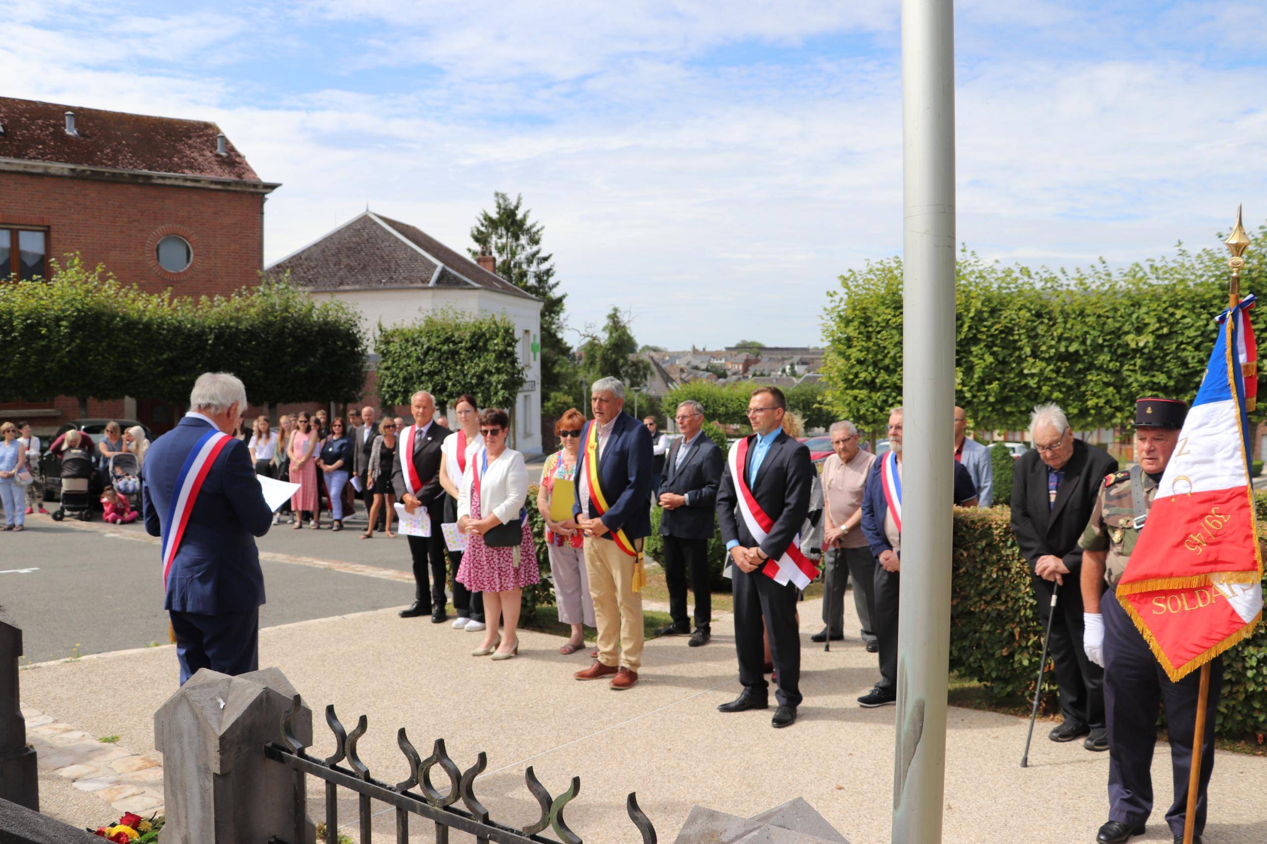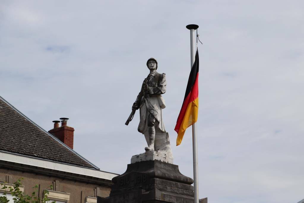Bei der anschließenden Zeremonie zum Nationalfeiertag auf dem mit Fahnen geschmückten Markt vor dem Rathaus wurden feierlich, nach einer Rede des Bürgermeisters und dem gemeinsamen Singen der deutschen, französischen und europäischen Hymnen, am Ehrenmal Kränze niedergelegt.