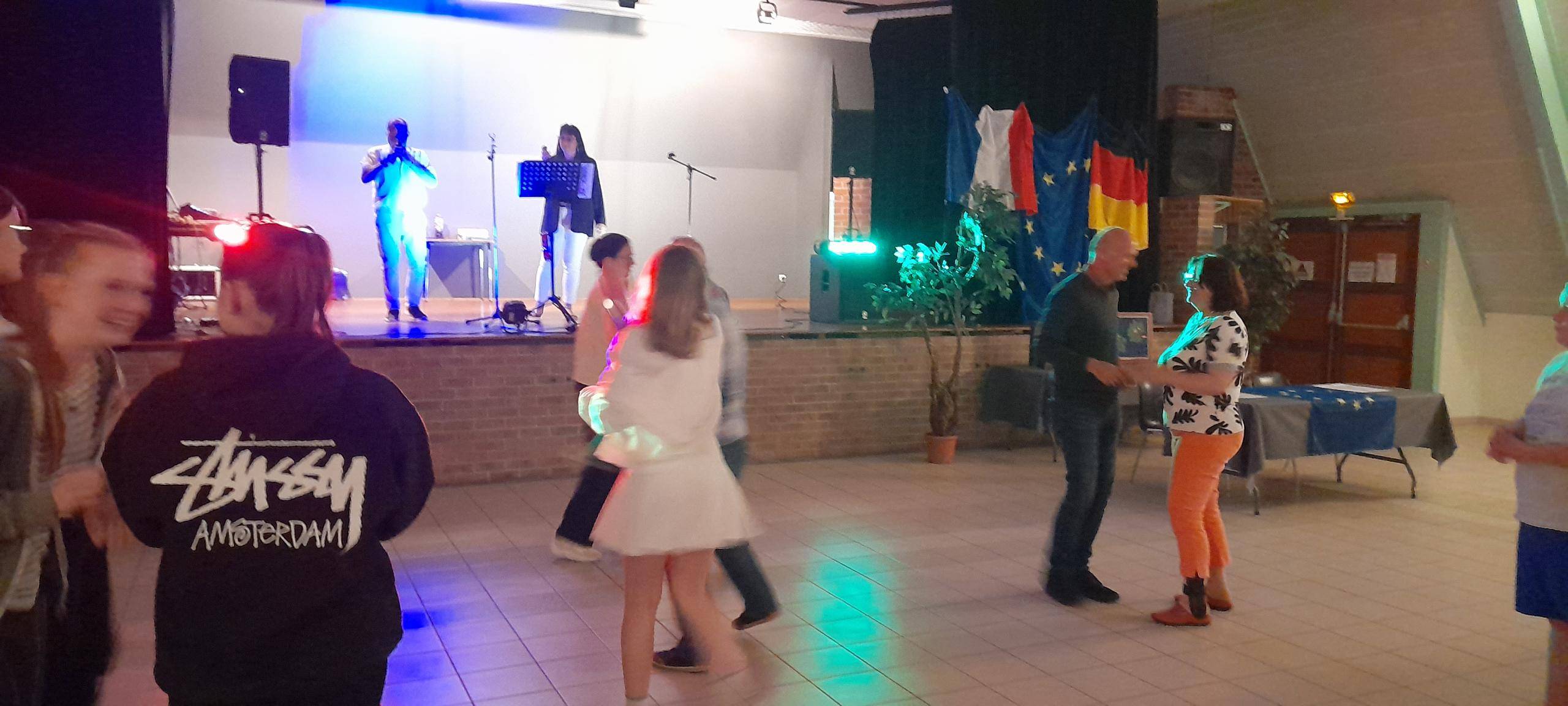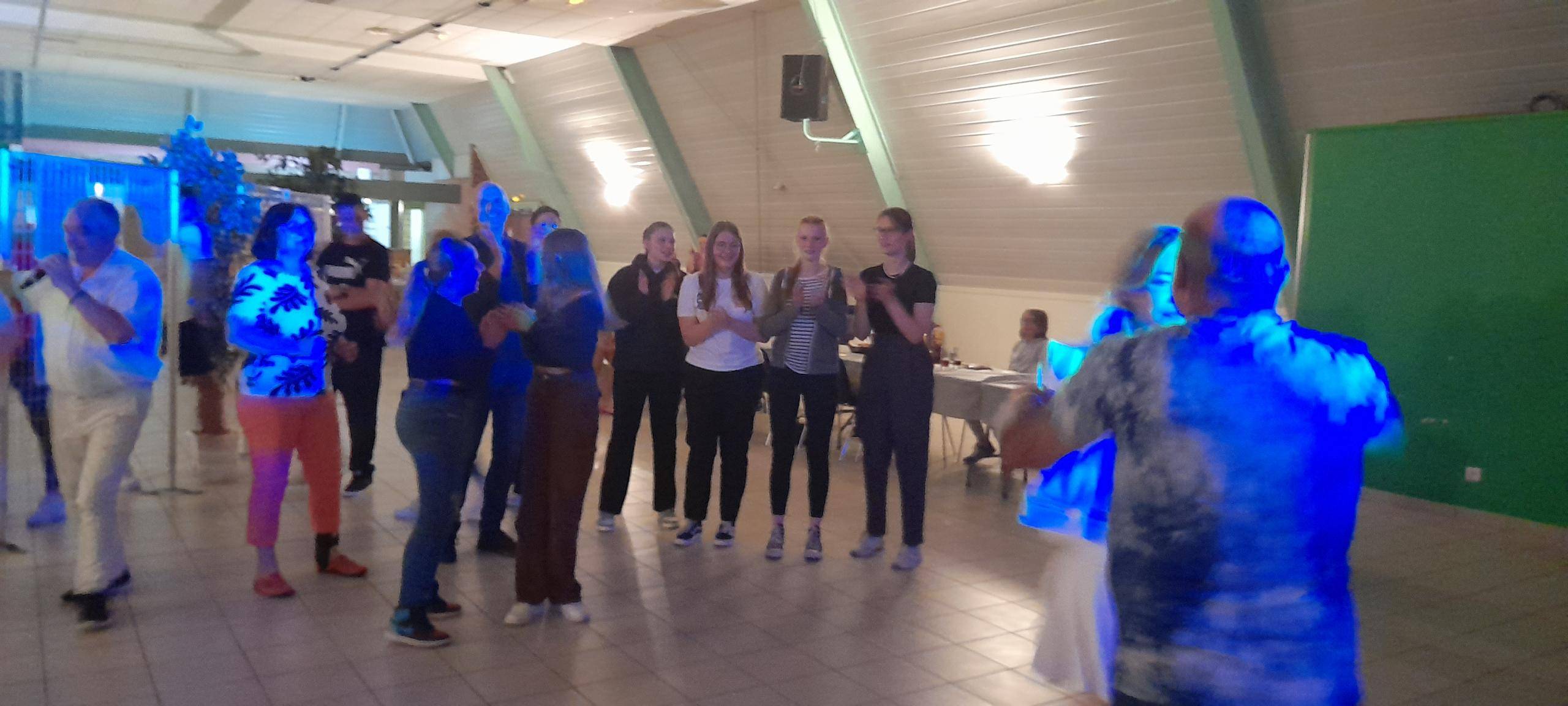 Nach 2,5 Stunden Rückfahrt und schnellem Umziehen überraschten uns die Freunde aus Anor neben einem selbstgemachten schmackhaften Abendessen mit einer zünftigen Disco incl. Animation. Insbesondere die Schüler, aber auch die älteren Semester beider Länder nutzten die Gelegenheit, ein paar der zu viel genossenen Kalorien wieder loszuwerden.