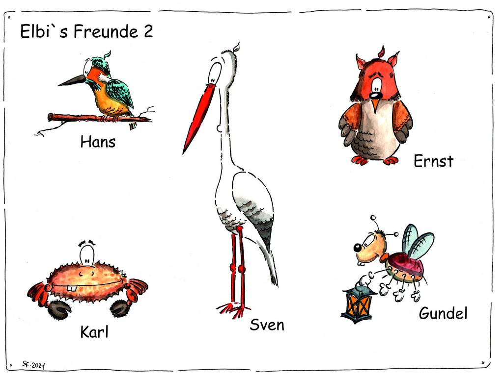 Entwicklung der gezeichneten Figuren „Elbi und seine Freunde“