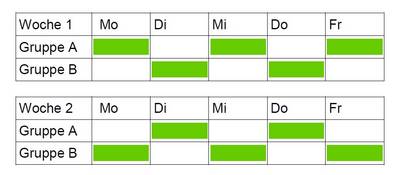 Schulen. Bei einem tageweisen Wechsel kann dieser in Kombination von Präsenz- und Fernunterricht wie folgt gegliedert werden:
