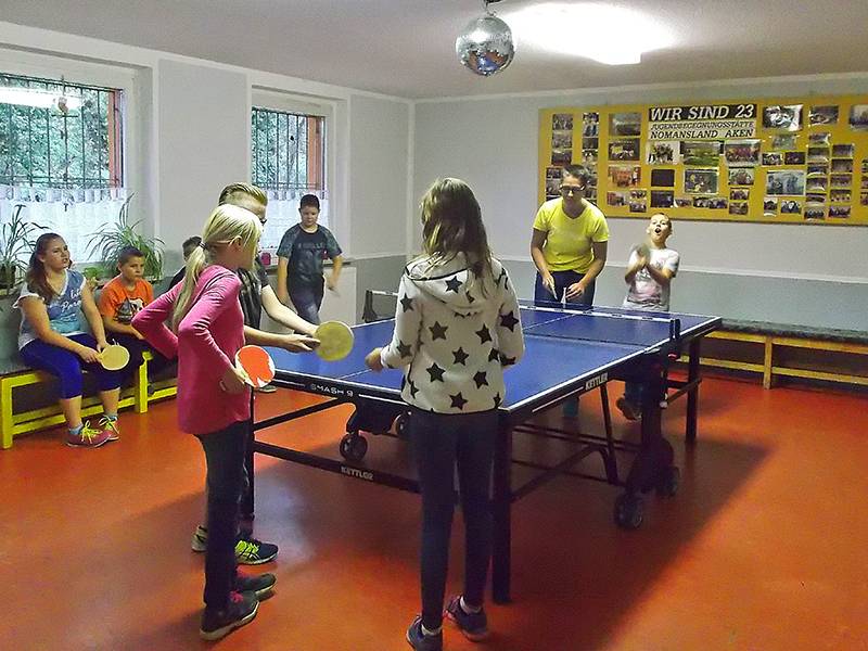 Unser 1100m2 großes Außengelände umgeben von der Natur lädt, entsprechend der Jahreszeit, z.B. zum Volleyballspielen auf dem Beachvolleyballfeld oder gemeinsamen Grillen und feiern in unserer Grillecke ein. Für die Freizeit sind unter anderem Billard, Dart, Tischtennis, aber auch eine Musikanlage, TV sowie unterschiedliche Brett- und Kartenspiele vorhanden. Für die Fitness unserer Besucher ab 18 Jahren steht der Sportraum zur Verfügung.