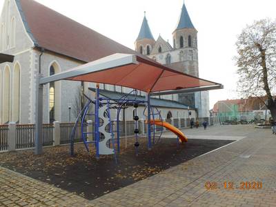Mit dem Neubau des Sonnensegels hat das kombinierte Spielgerät einen Sonnenschutz erhalten.