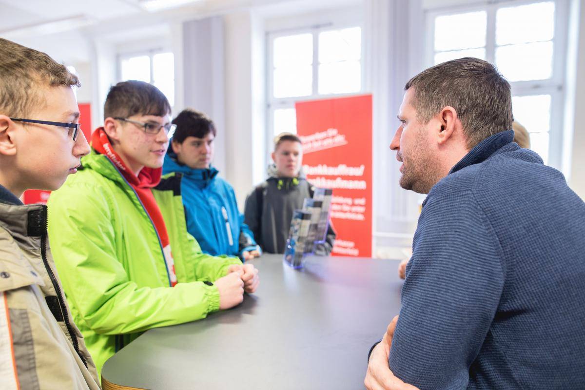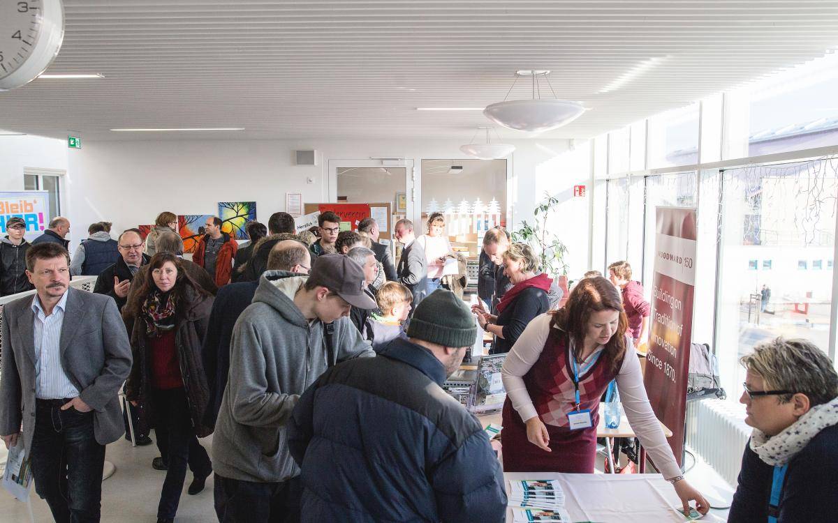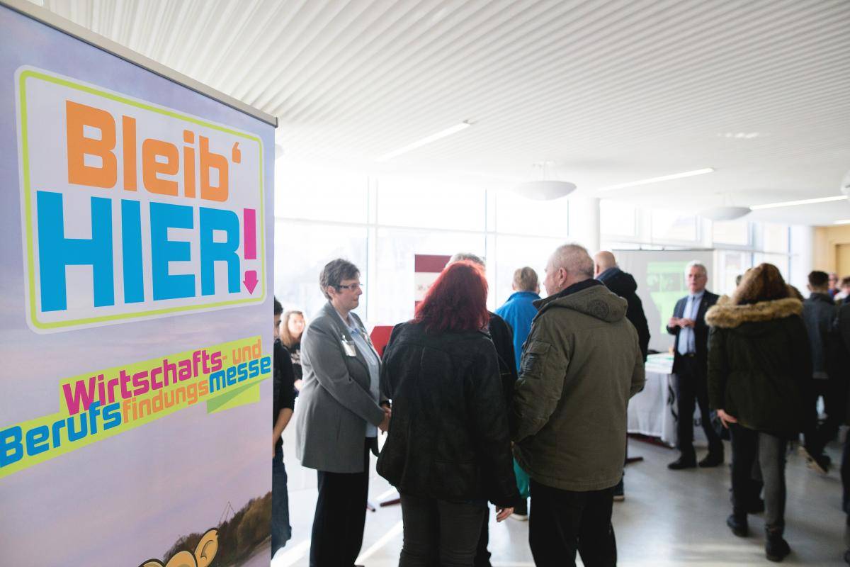 Zwischen den Ausstellern und den Berufsinteressenten konnten informative Gespräche geführt werden, erste Praktikas wurden vereinbart und dem Motto der Messe „Bleib hier“ die Türen geöffnet.